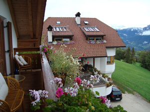 Ein Blick vom Balkon unserer Ferienwohnung auf dem Unterlattmayrhof in Klobenstein (Südtirol)